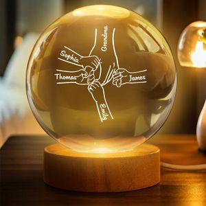 Light up the unbreakable bond between generations with this heartfelt personalized crystal ball. Designed to immediately capture attention with its soft glowing light and touching hand-holding illustration, it tells a beautiful story of love, connection, and family unity. Personalized with names, this crystal ball transforms a simple moment into a deeply meaningful keepsake—one that honors Grandma, Mom, and the little hands that hold their hearts. Whether placed on a nightstand or displayed in the living room, it’s a gentle reminder that family love always shines the brightest.
