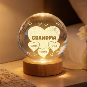Grandma Mom Hearts Custom Kids Names - Personalized Crystal Ball LED Night Light - Gift For Grandma, Mom
