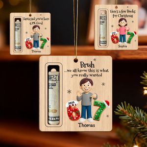 Here’s A Few Bucks For Christmas Kid Slang Trending 67 - Personalized Wooden Ornament - Holiday Money Holder