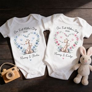 Make her very first Mother’s Day unforgettable with a keepsake as sweet as the bond she shares with her little one. This adorable personalised onesie features a tender giraffe mom and baby nestled inside a delicate floral heart, symbolizing love, protection, and new beginnings. Customized with the year and heartfelt message, it transforms a simple outfit into a cherished memory she’ll treasure forever. Professionally printed for vibrant, lasting color, this onesie is the perfect way to celebrate her journey into motherhood in the most meaningful way.