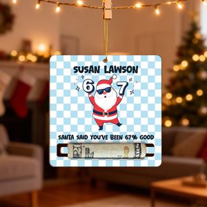 Santa Said You've Been 67% Good 2025 Slang 67 - Personalized Wooden Ornament - Holiday Money Holder, Teen Kid Gag Gift